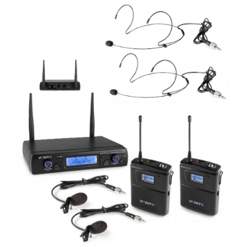 2 Microfones Cabeça/Lapela UHF 16 Canais s/ Fios - VONYX