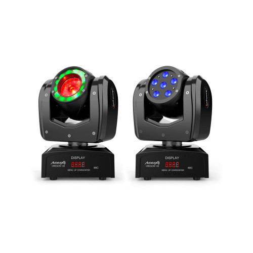 É ultrarrápido e gera giros horizontais (pan) e verticais (tilt) contínuos de grande precisão, com um potente motor que gera raios de luz nítidos e focados. É extremamente brilhante e tem uma longa vida útil. O cabeçote móvel Oregon 120 é resfriado por um ventilador com temperatura controlada, garantindo uma operação confiável e longa vida útil dos LEDs.