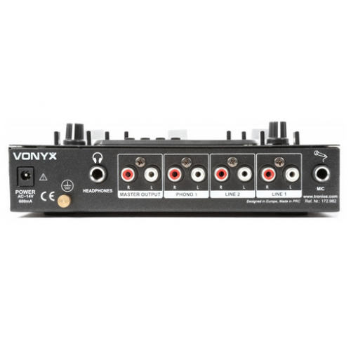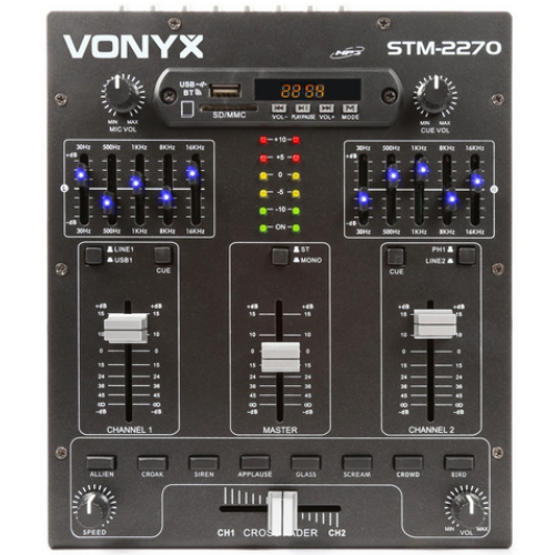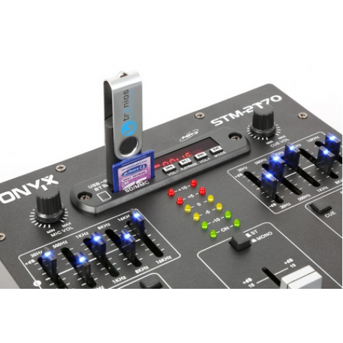 MP3, equalizador, 8 efeitos a tempo real, funções cue e crossfader, etc.